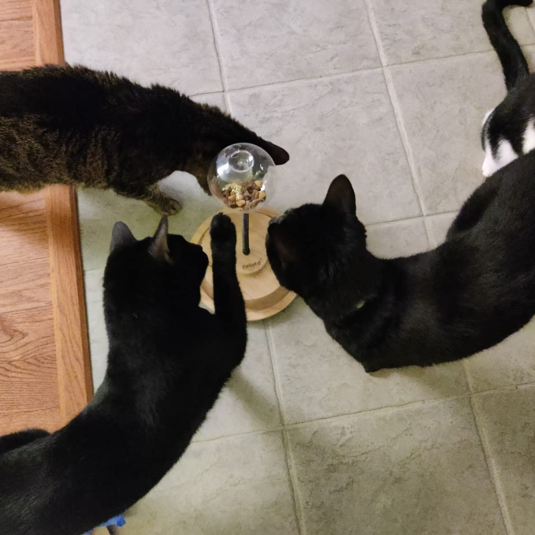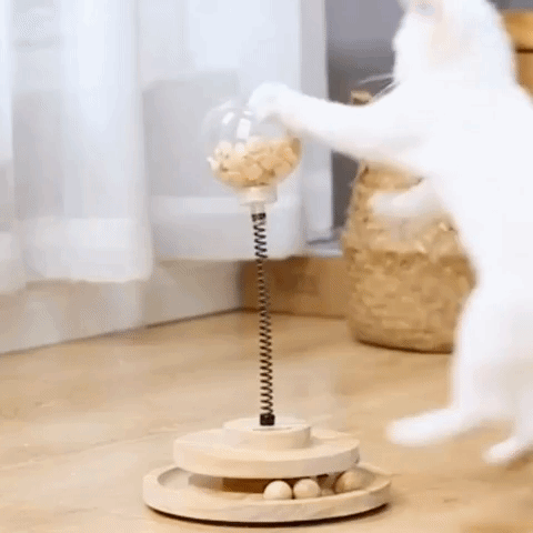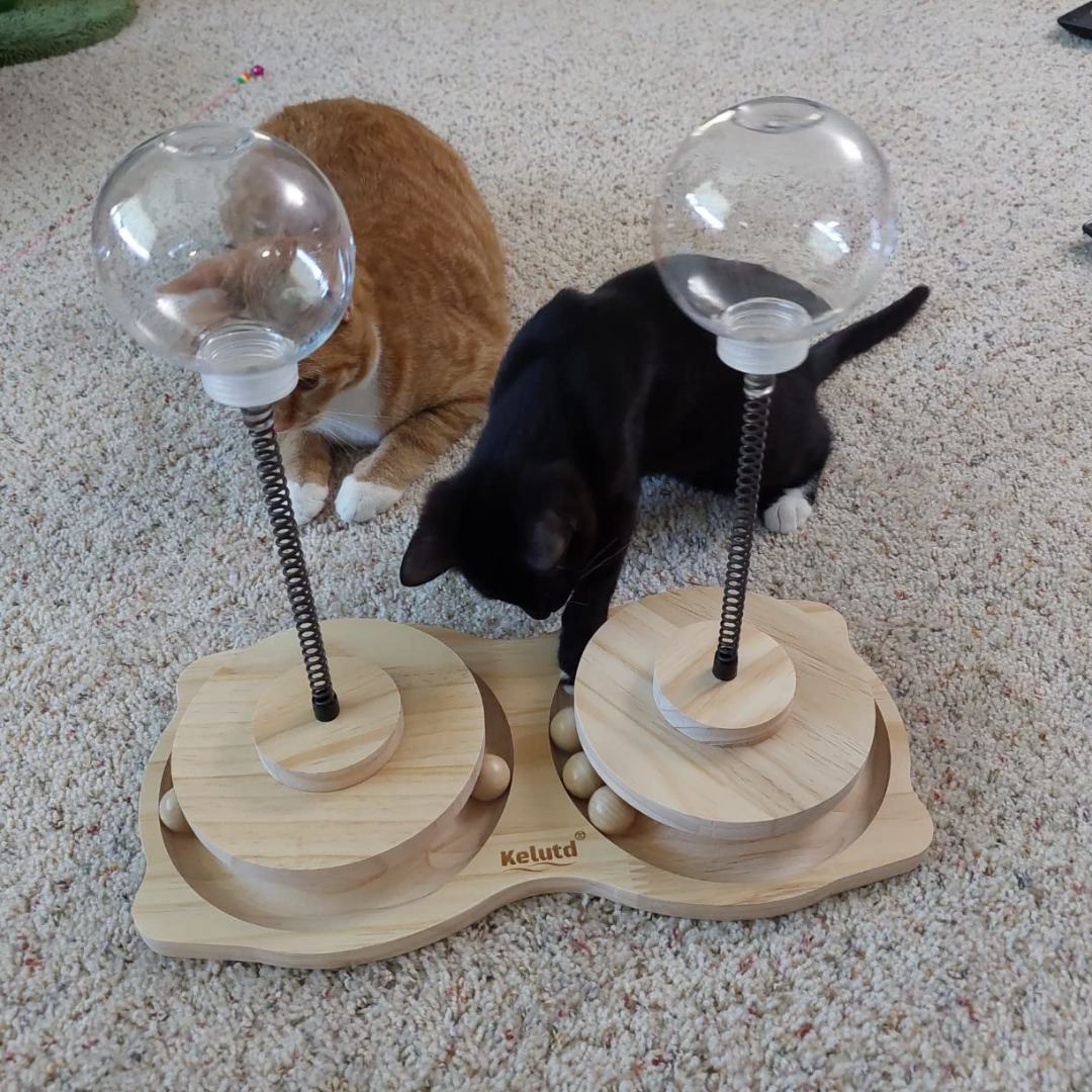 "This toy is a game-changer for my cats' playtime routine. The slow release of treats keeps them occupied, and the solid wood construction ensures it withstands their enthusiastic play sessions."