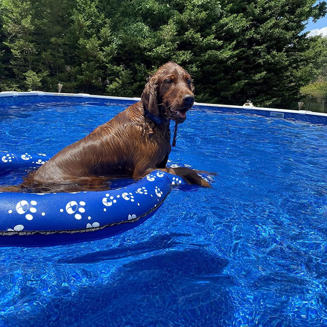 "This dog floating bed is a game-changer! It's spacious enough for my large dog to stretch out and enjoy the water. The safety design with the PVC pipe and nylon cover is fantastic, preventing any accidental punctures. Plus, the lightweight and portable design make it effortless to bring along on our adventures."