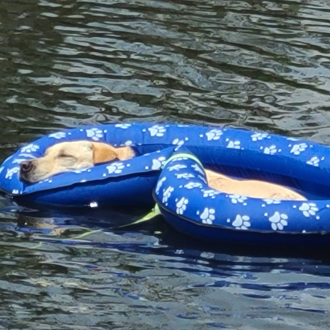 "What a fantastic purchase! My dog took to this floating bed immediately. It's his own little oasis on the water. The quick inflate and deflate valve make it super easy to set up and put away. I couldn't be happier with the quality and convenience of this product."