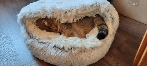 "I have tried a few cat caves, but this one is THE one. He is always sleeping or hiding in it when he wants to get warm and I have found my personal space again. Win-Win all around!"
