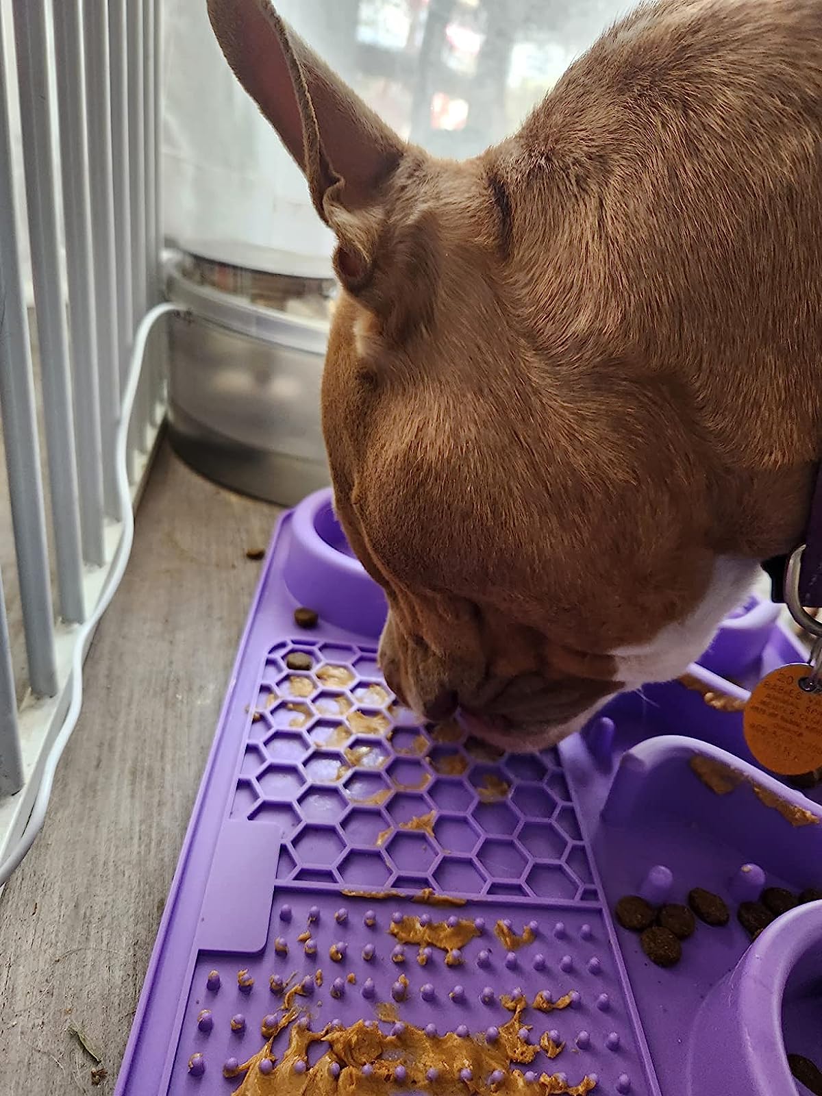 "My dogs seem to get bored often because they are left alone while we are at work and school. I decided to get this feeding mat as a little extra something to do for them and it's a hit! It's a sturdy silicone and has various ridges and valleys. I put some of their dry food in there and it took them no time to clean that up. I've also added peanut butter around some of the textured areas and that kept them entertained for a long while, making sure to lick it all clean. It's the perfect way to add a little fun to treat time. Highly recommend!"