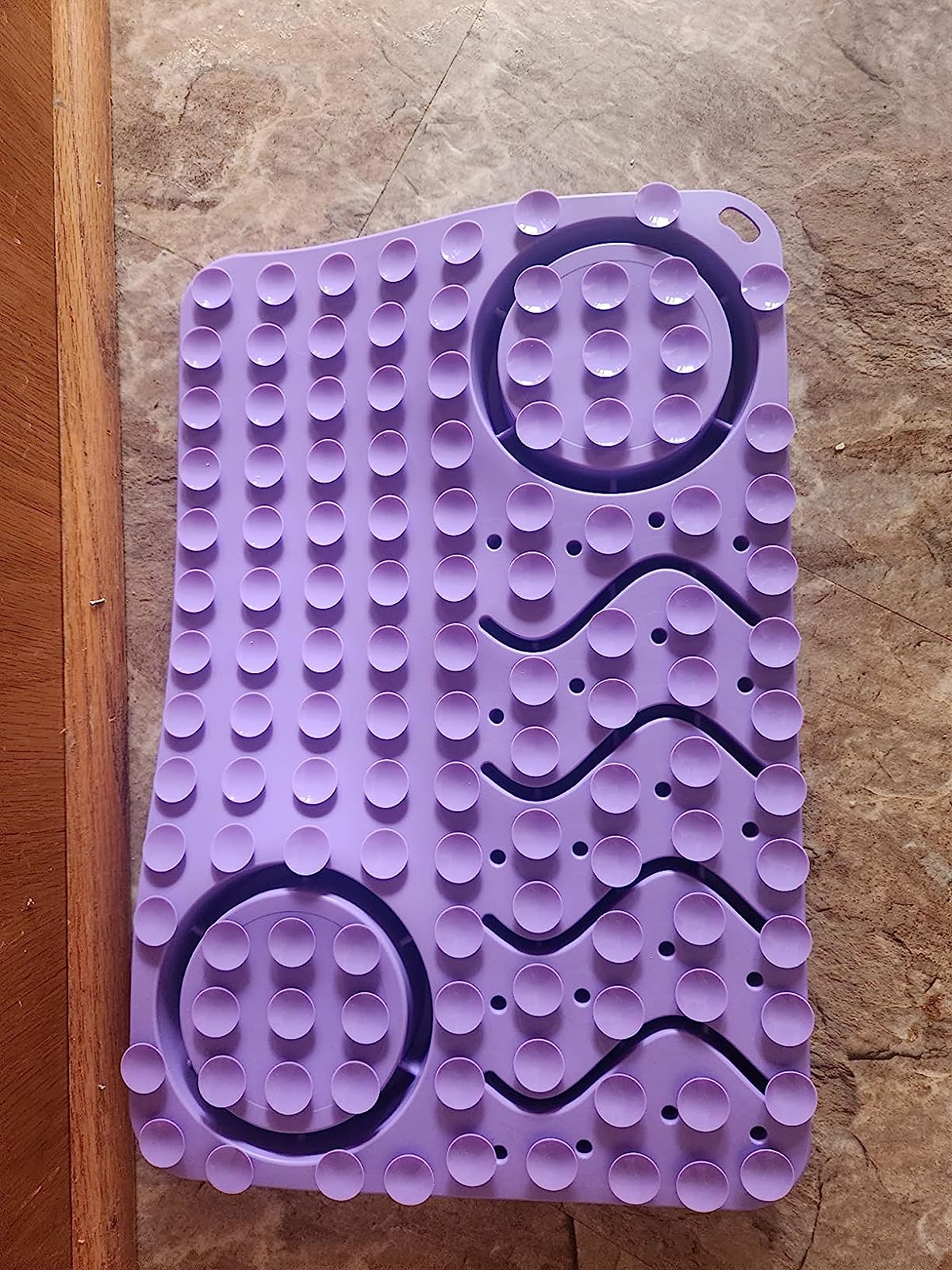 "I wasn’t expecting this lick mat to be so big! The quality is great.The mat is made of a thicker silicone than other lick mats that I have, and the suctions cups are amazing!. Probably due to its size, to hold all the food I’ll be putting in there.This can hold 2 cups of kibble along with smearing of Greek yogurt, peanut butter, and broth that I mix and freeze the kibble with in the bow portion without the slow feeder feature.I like this mat a lot, and am happy about how big it is. Definitely worth the purchase if looking for a bigger mat to feed your dog’s meal from!"